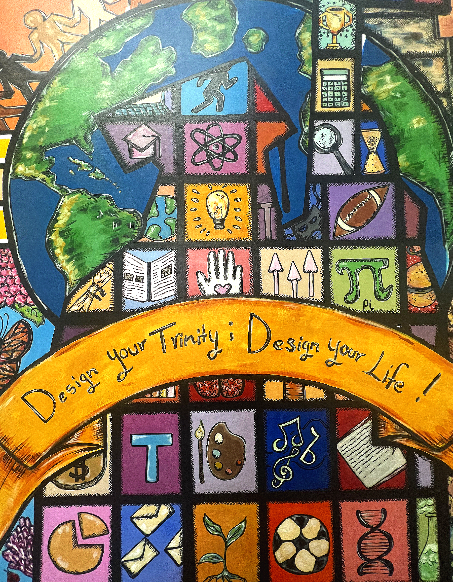 Installed at the entrance of Trinity College’s Career and Life Design Center, this mural explores themes of growth, transition, and purpose. The design integrates symbolic elements representing leadership, career exploration, community building, and the ever-shifting path of self-discovery.
